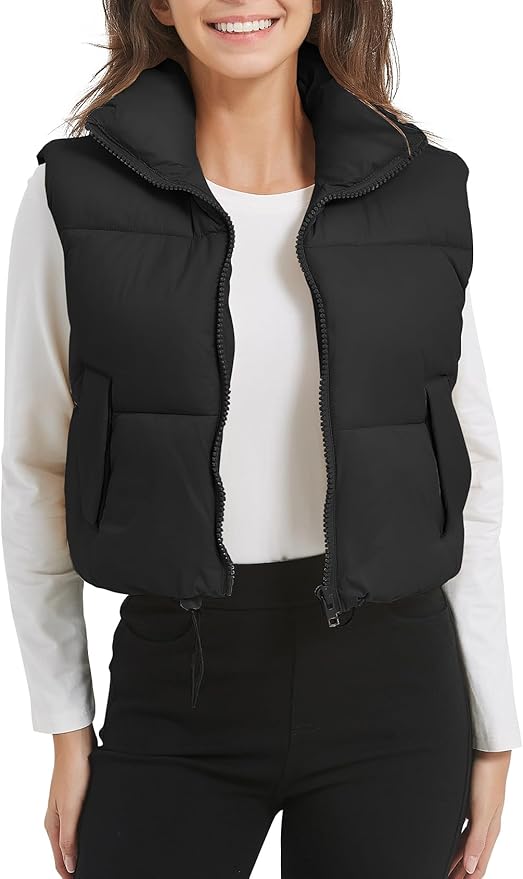 Cropped Puffer Vest Womens Stand Collar Sleeveless Lightweight Padded Jacket Winter Warm Down Vests Jacket