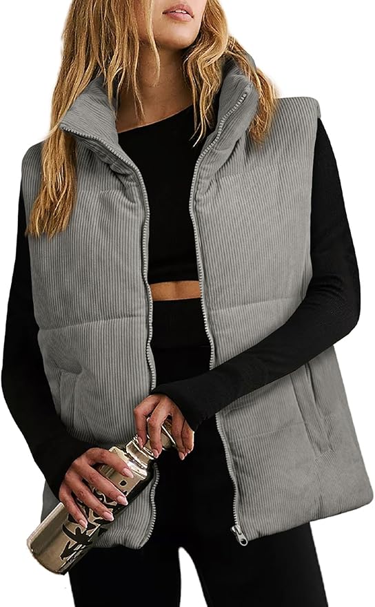 Corduroy Cropped Puffer Vest for Women Lightweight Stand Collar Sleeveless Jackets Zip Up Clothes Fashion 2024