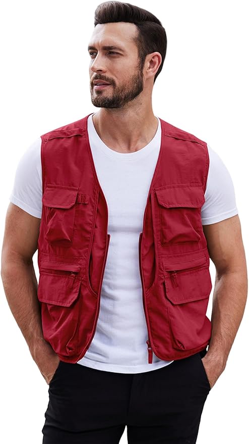Mens Fishing Vest Summer Outdoor Work Vest Utility Safari Travel Lightweight Sleeveless Jackets with Pockets