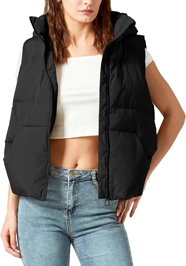 Women's Crop Puffer Vest Stand Collar Sleeveless Zip Up Lightweight Fall Padded Gilet Coat