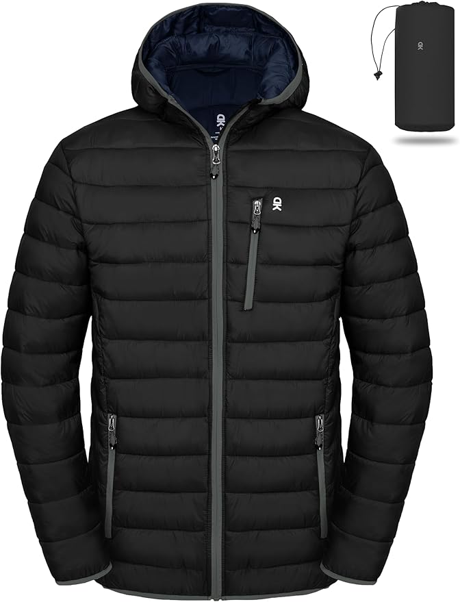Men's Packable Puffer Jacket Lightweight Hooded Windproof Winter Coat with Recycled Insulation