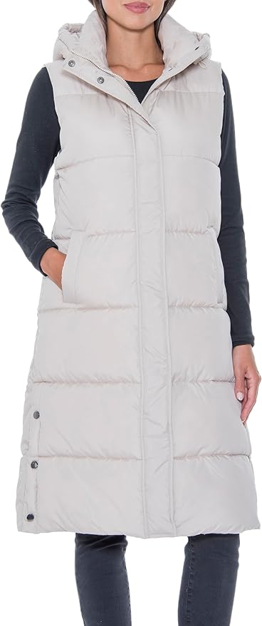 Winter Long Puffer Vest for Women Zip Up Hoodie Quilted Vest Jacket