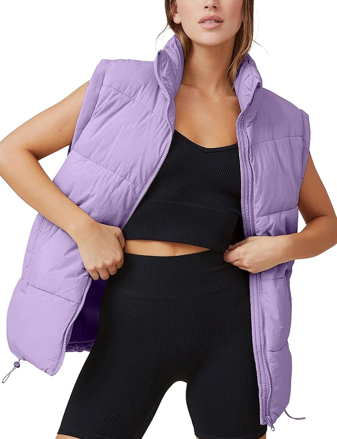 Puffer Vest Women Zip Up Stand Collar Sleeveless Padded Gilet Jacket